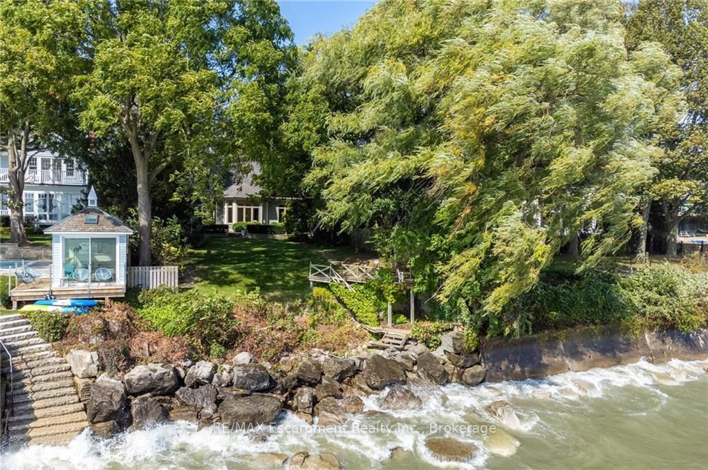 RIPARIAN WATERFRONT IN DOWNTOWN OAKVILLE. Potential abounds! Fantastic opportunity to renovate, or build a new custom home. The possibilities are endless in this secluded waterfront residence where location and privacy are second to none. Charming main floor offers a functional layout with an open concept living and dining room as well as a separate family room with views to the water! There are 2 main floor bedrooms, a 3-pc bathroom and a conveniently located main floor laundry room. Upstairs, the principal retreat provides a walk-in closet, 4-piece bathroom, 3 skylights, and a den with walkout to the upper flat roof where you can watch sailboats gliding across the Lake. Rare, detached double car garage. Located on an approximately 67ft x 170ft riparian lot, graced by mature trees and magnificent lake views off the 2-tiered deck to the water.